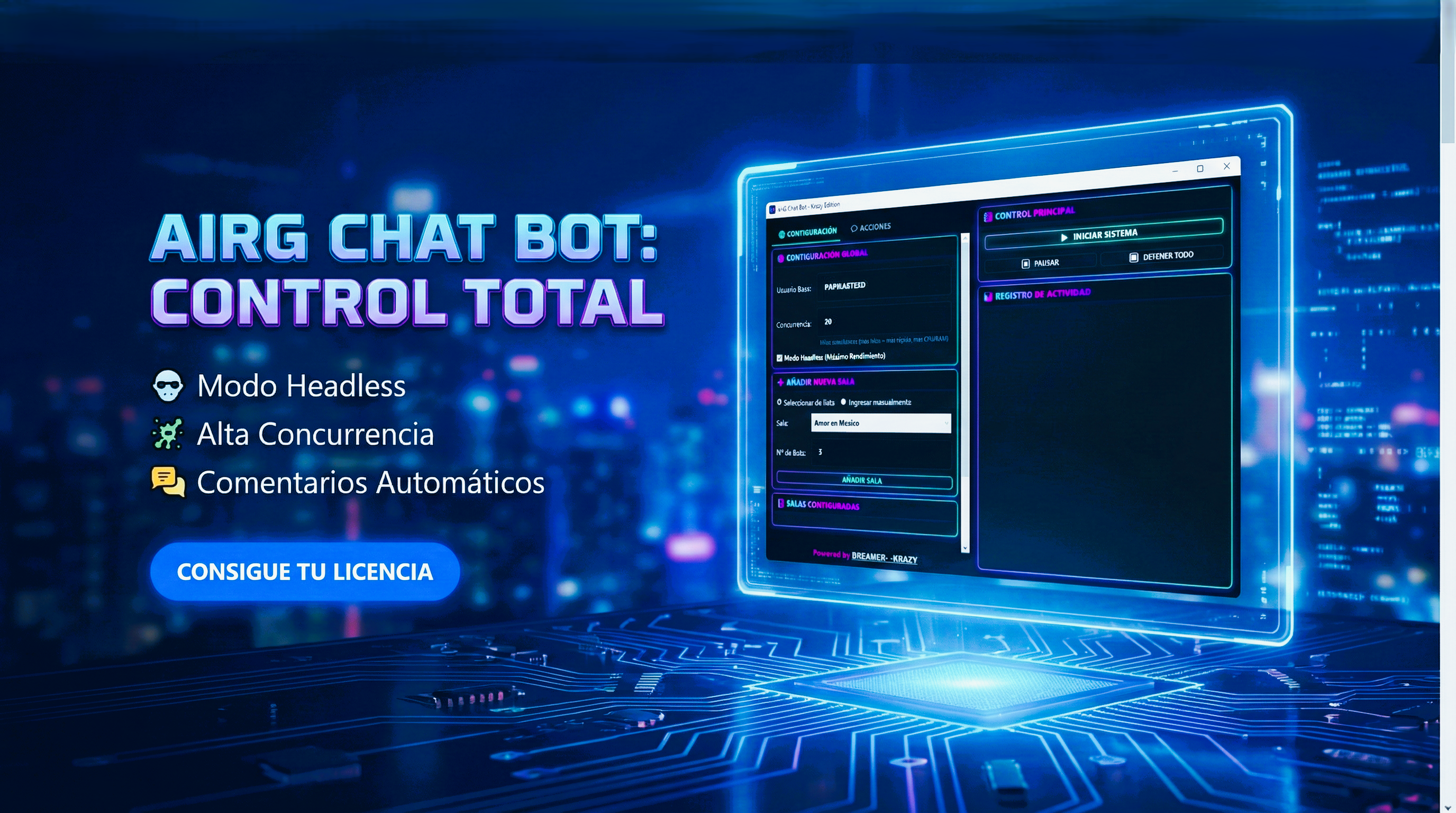 Deja de perder tiempo escribiendo. El bot más avanzado con Modo Híbrido (API + Navegador), auto-creación de cuentas y sistema anti-caídas.